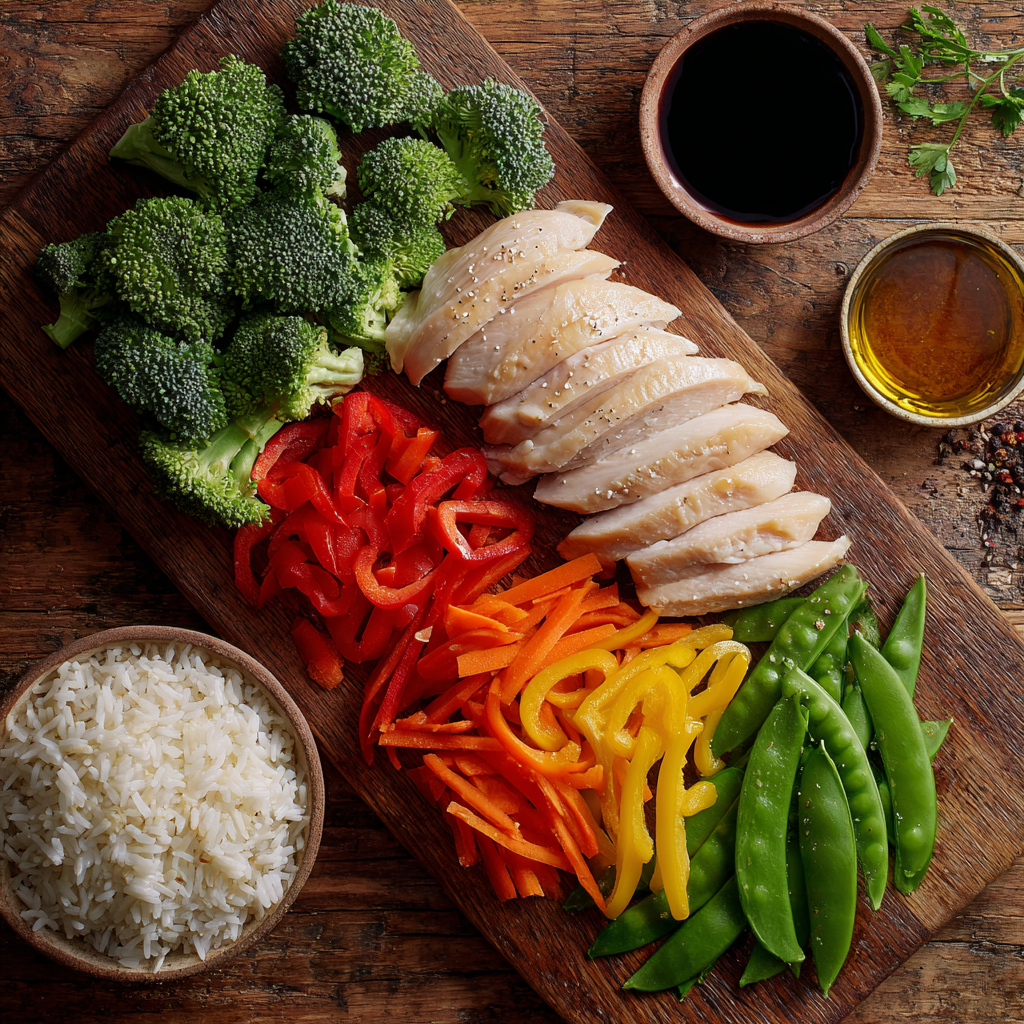 - Prepare Ingredients: Slice the chicken thinly for quick cooking. Chop and prepare all vegetables ahead of time. Stir fry moves quickly, so having everything ready is key.