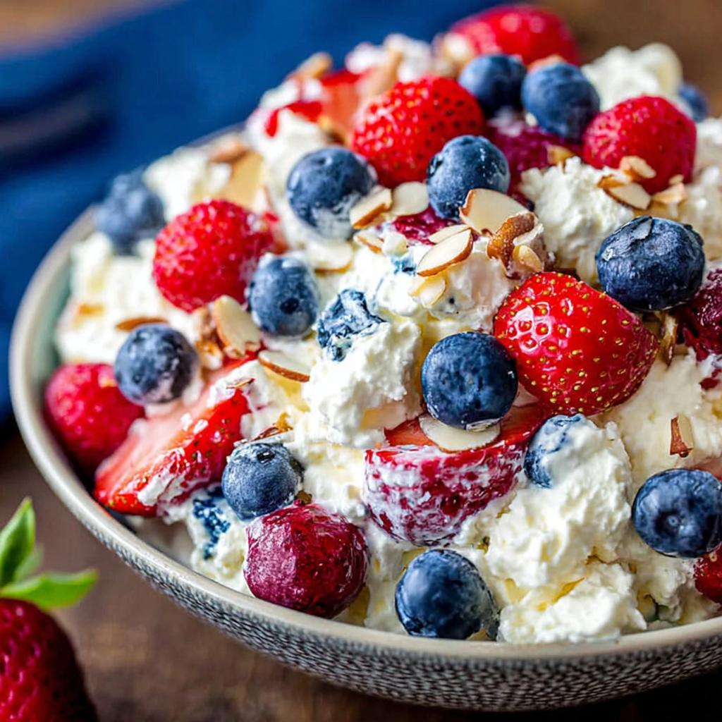 Red, White, and Blue Cheesecake Salad Recipe Delight!