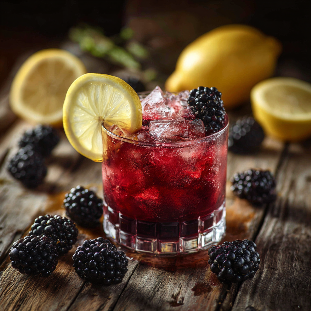 - Garnish with a couple of fresh blackberries and a thin lemon slice.