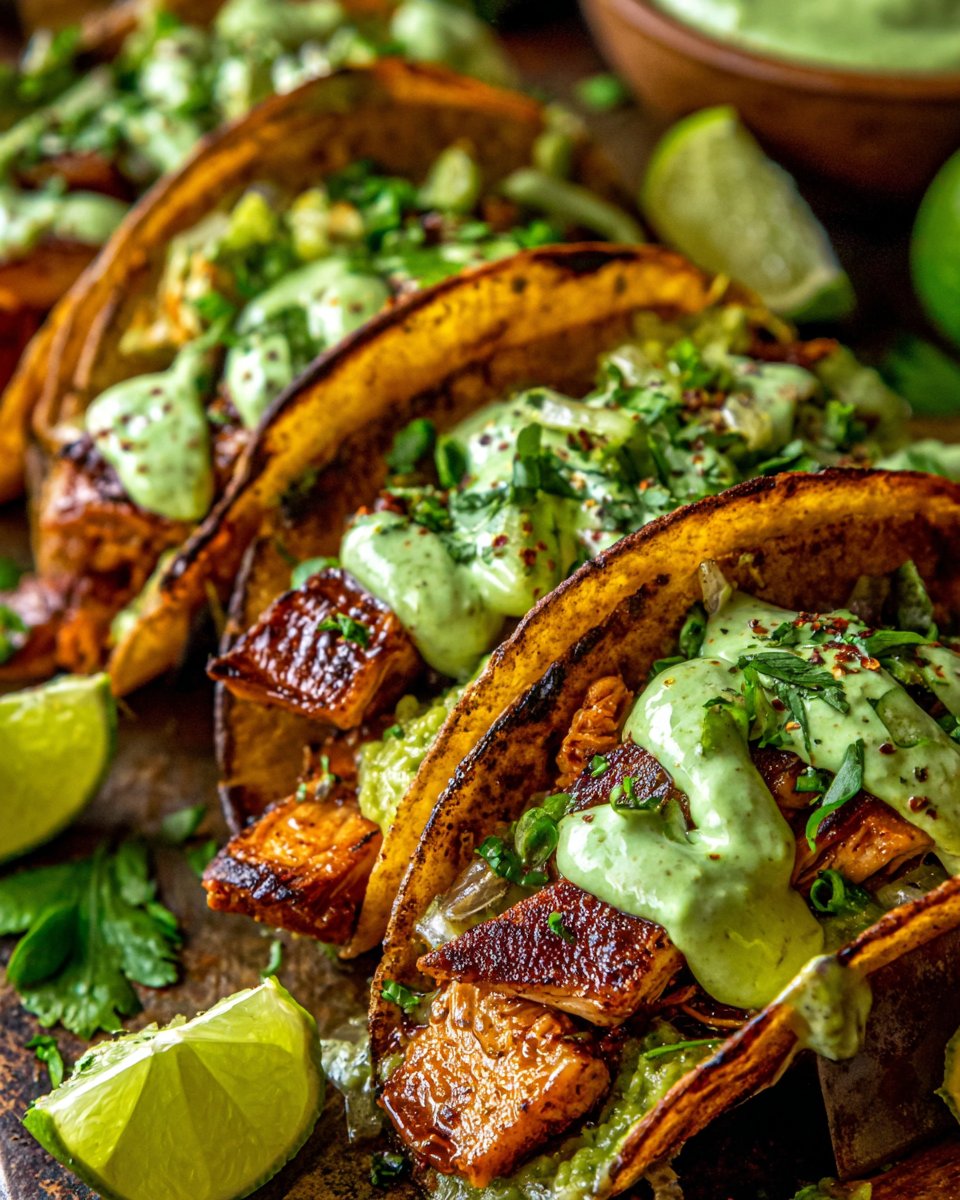 Crispy Chicken Tinga Tacos offer a delightful blend of flavors and textures, making them a staple for any taco night. The smoky, spicy chicken combined with the refreshing avocado jalapeño crema creates a perfect harmony in every bite.