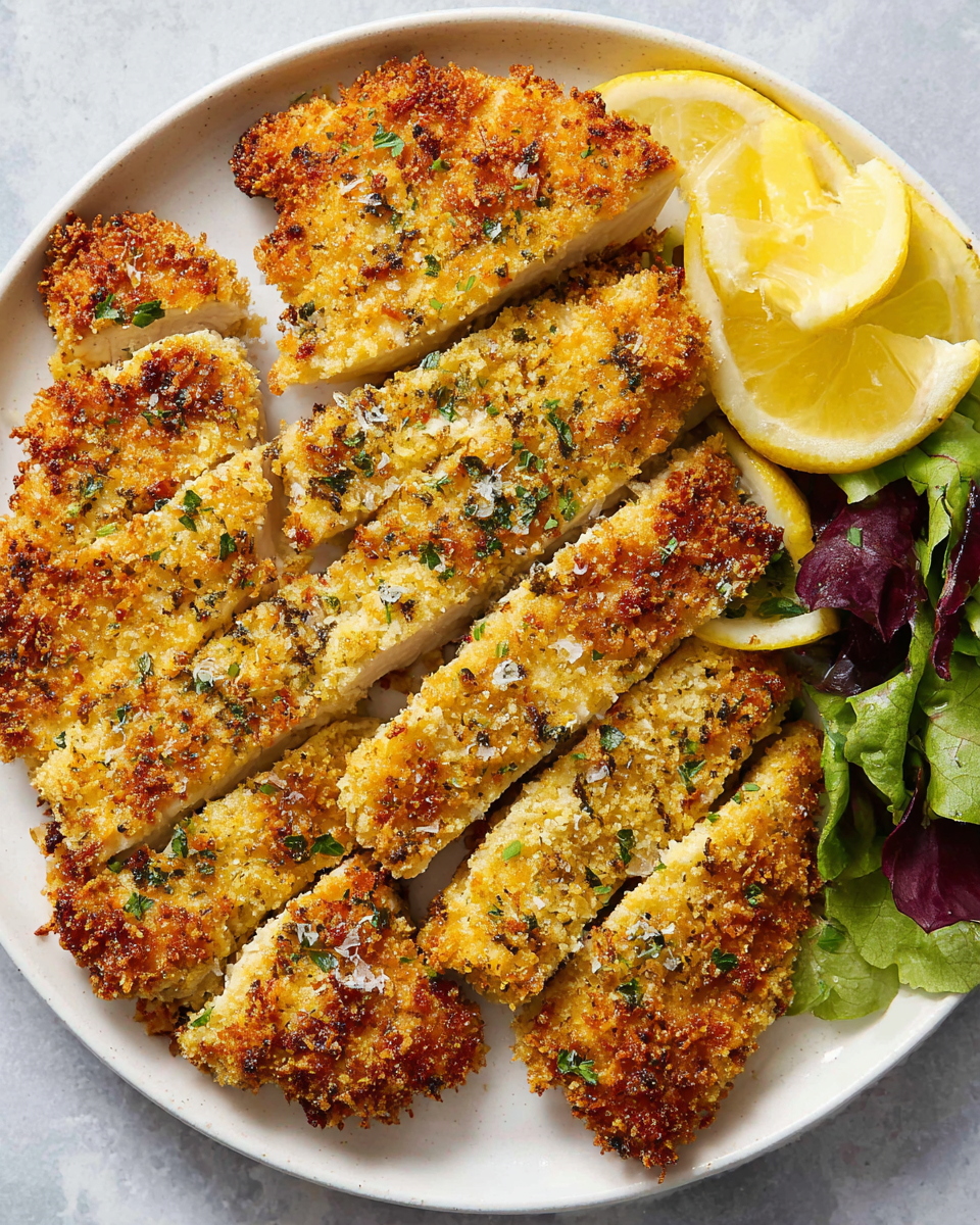 Marinating the chicken in a mixture of lemon juice, herbs, and olive oil for a couple of hours before breading can enhance its flavor significantly.