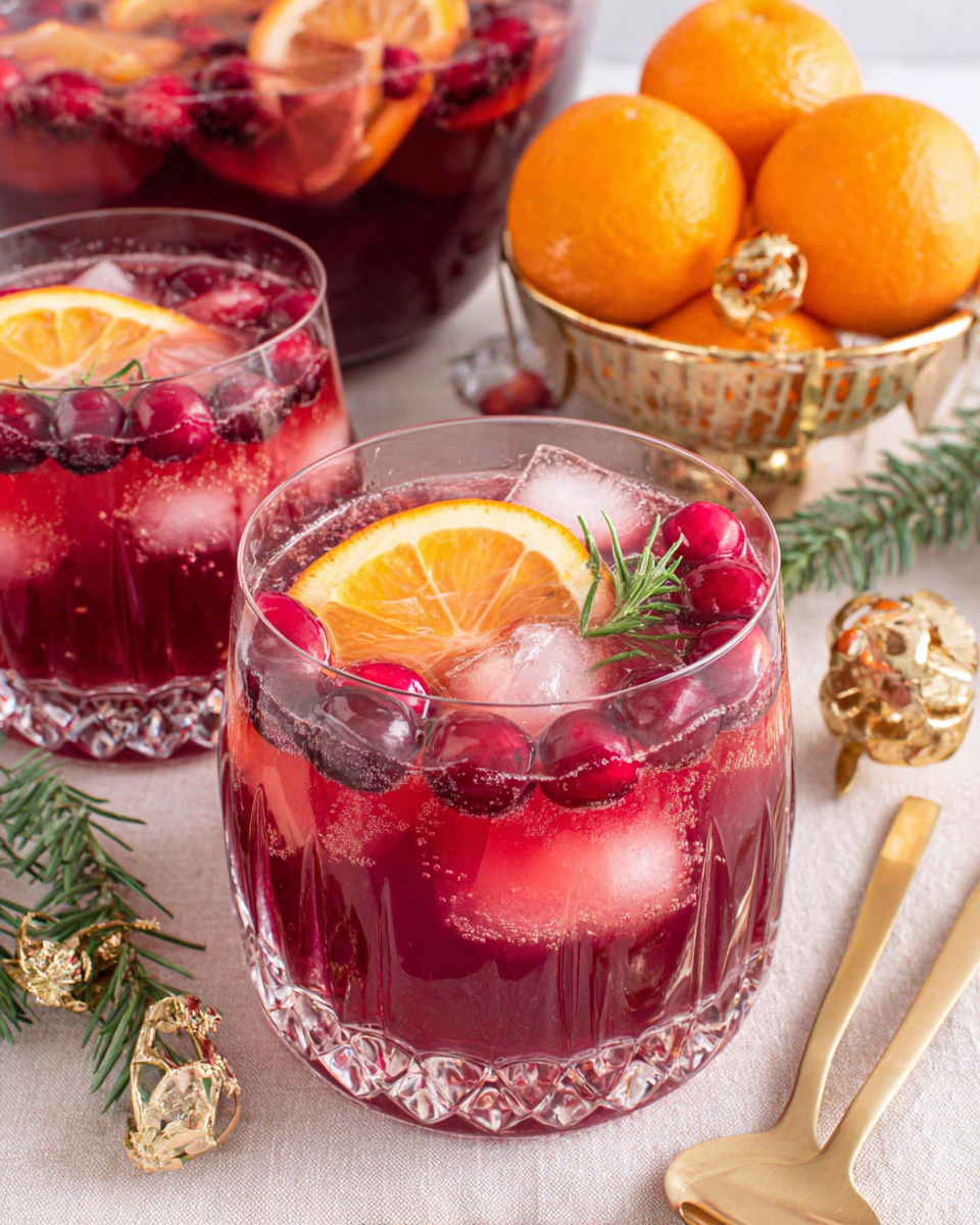 Cranberry juice forms the base of this punch, providing a tart and tangy flavor. It adds not only a rich red hue, perfect for the holiday aesthetic, but it also pairs beautifully with other fruits. - 2 cups orange juice