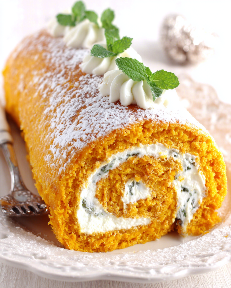 You can enhance the festive feel of your pumpkin roll by decorating it with a dusting of powdered sugar, or even some whipped cream. Adding fall-themed sprinkles or edible leaves can further elevate its appearance.