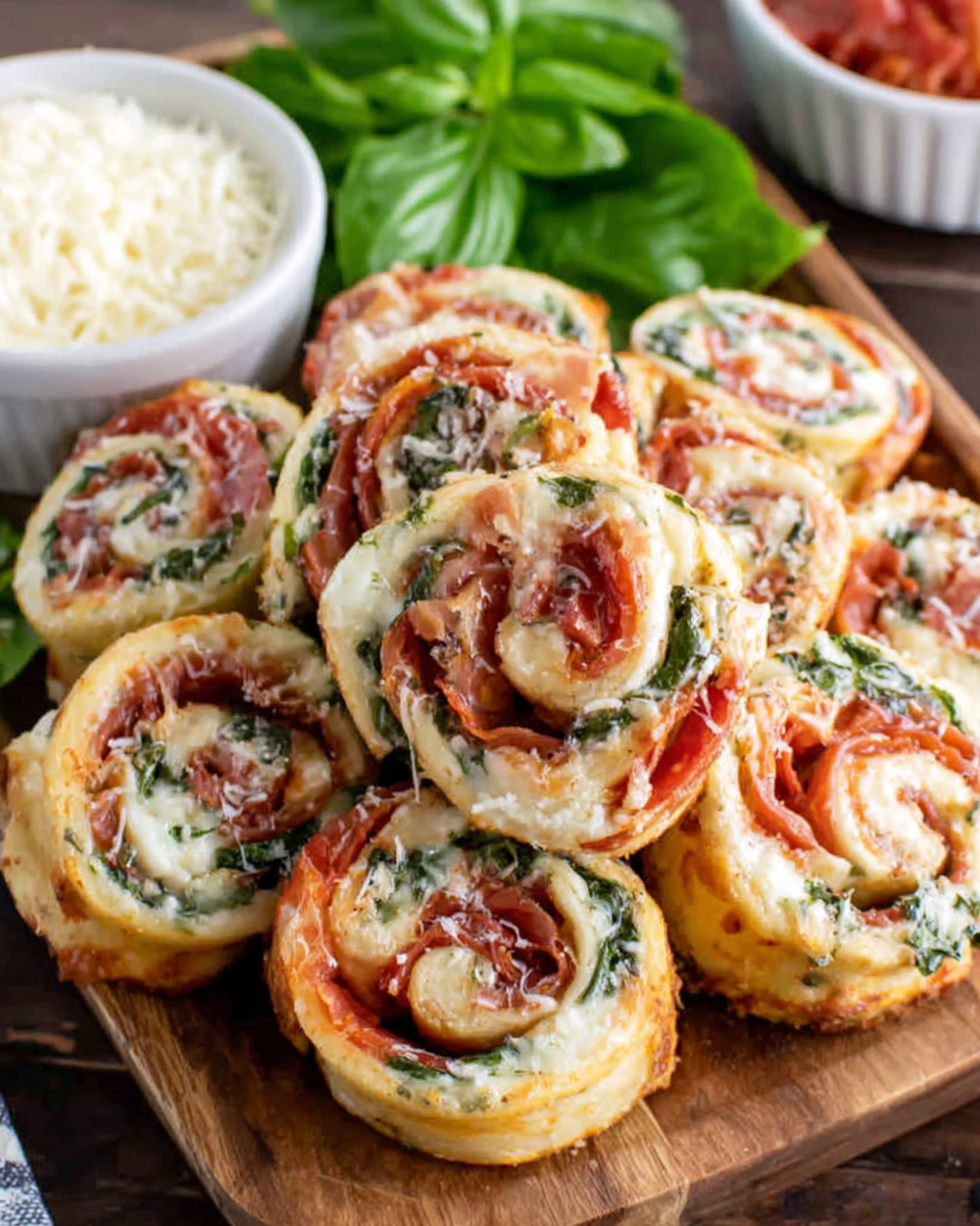 Fresh basil adds a burst of color and a fragrant note to the pinwheels. Its bright taste complements the savory ingredients, making each bite feel refreshing.