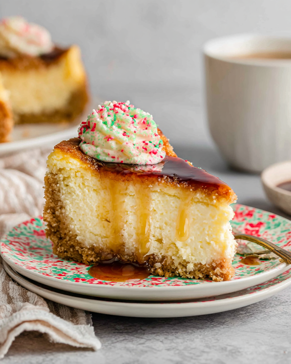 This final touch adds a delightful texture and festive flair, enhancing both flavor and presentation. The whipped cream provides a fluffy contrast to the creaminess of the filling, while the candy canes offer a satisfying crunch that complements the cheesecake’s soft texture.