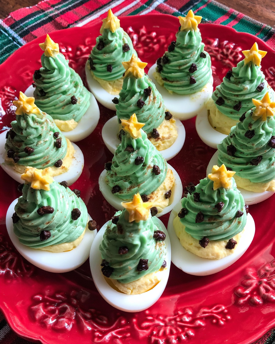 Christmas Tree Deviled Eggs delight the eye and tantalize the taste buds, making them a must-have addition to your holiday spread. With their vibrant appearance and rich flavor, they will surely become a seasonal tradition in your home.