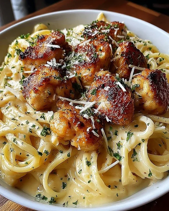 - What makes this recipe shine under search engines (that’s our secret !) Garlic Butter Chicken Bites with Creamy Parmesan Pasta is more than a name; it’s a promise.
