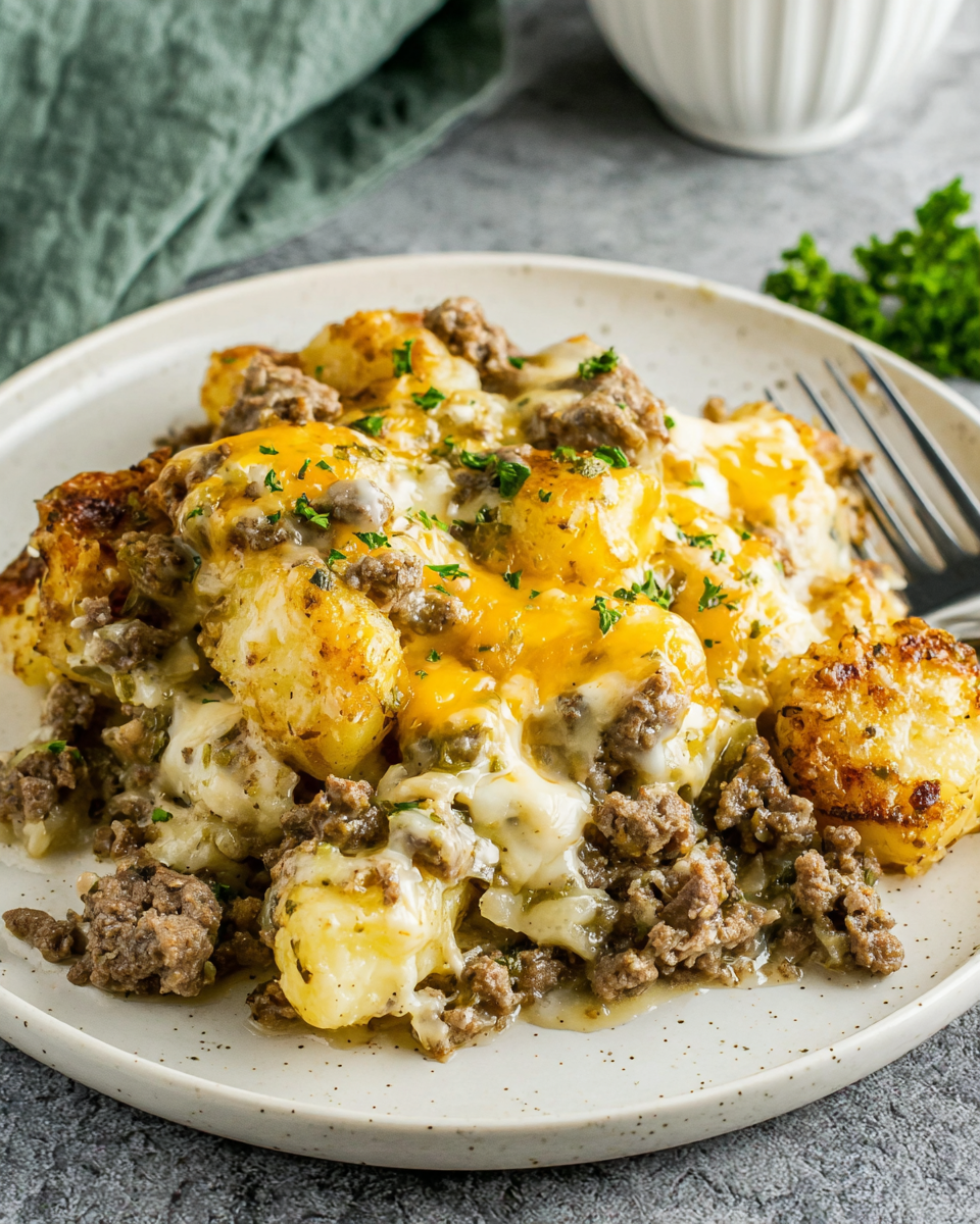 The combination of ground beef and potatoes is classic comfort food, and when you layer it with onions, creamy soup, and melted cheese, it transforms into something irresistible. It’s perfect for those nights when you want a no-fuss, wholesome, and satisfying dinner.