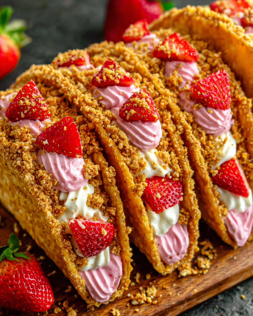 If you're looking for a sweet twist to your dessert table, Strawberry Crunch Cheesecake Tacos are the perfect treat. These delightful tacos combine creamy cheesecake filling with the vibrant taste of strawberries and an irresistible crunch.