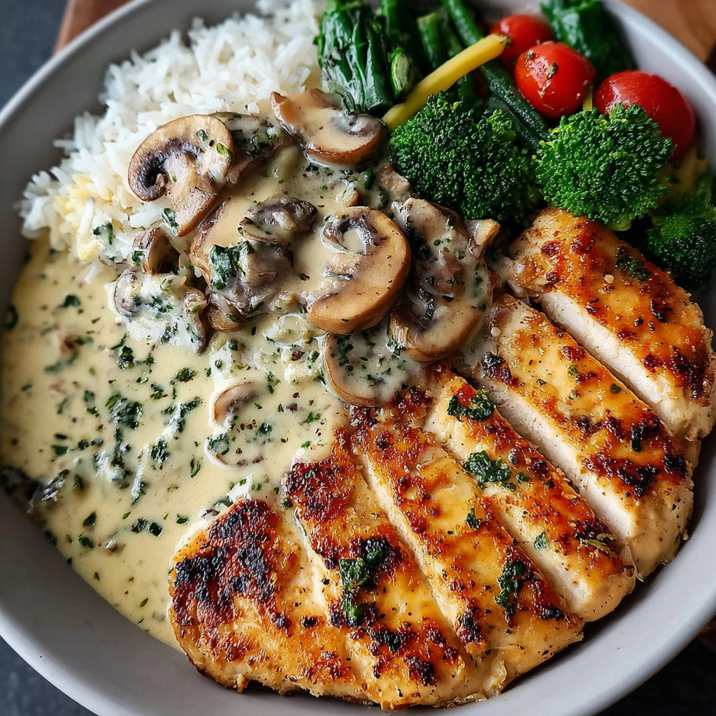 Grilled Chicken with Creamy Mushroom Sauce, Rice & made approachable with clear cues, pantry staples, and flexible swaps.