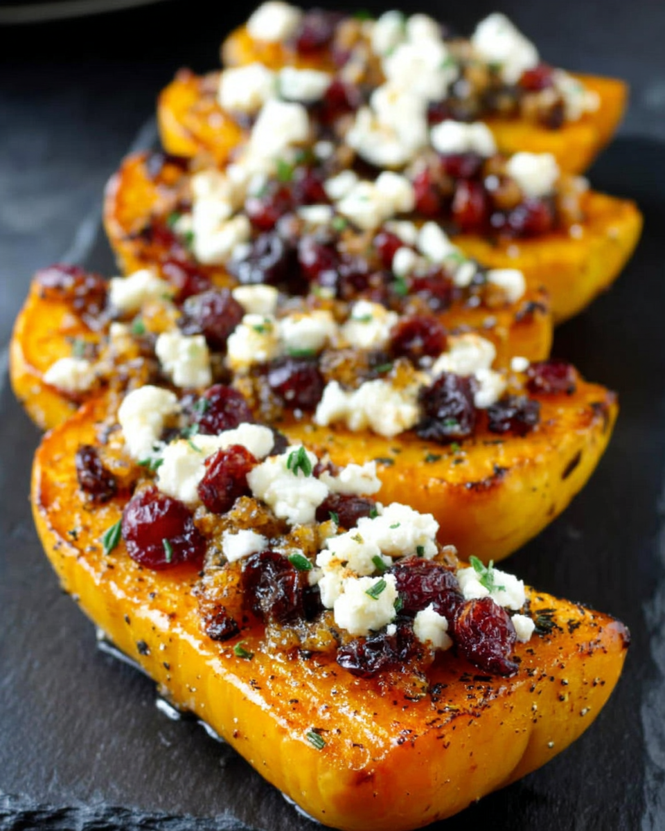 Cranberries provide a vibrant burst of tartness that beautifully balances the sweetness of the squash. They also add a pop of color and a chewy texture that enhances the overall dish. - 1/2 cup crumbled feta cheese