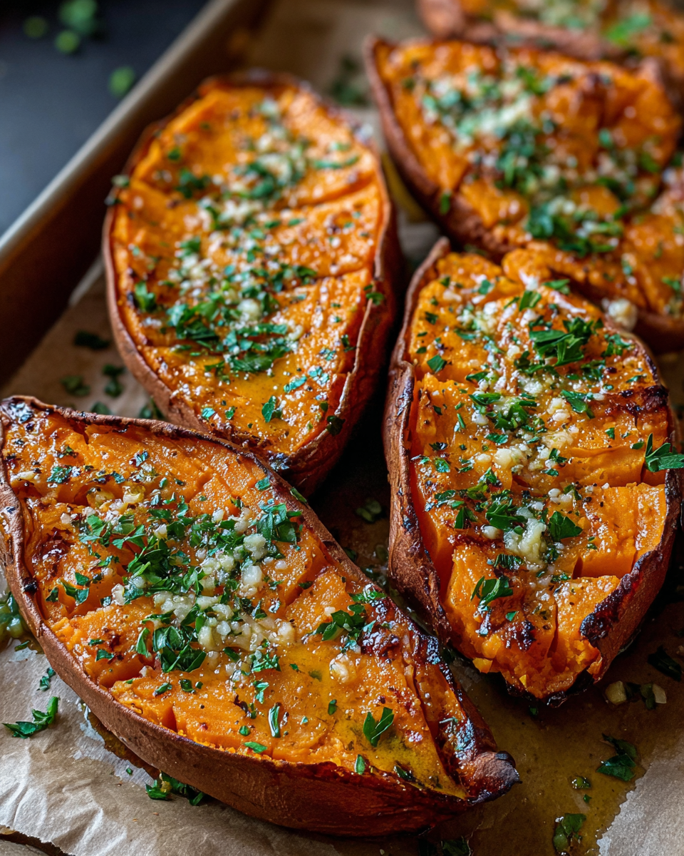 The beauty of this recipe lies in the simplicity and the harmony of flavors. The garlic butter enhances the earthiness of the sweet potatoes, creating a dish that's both comforting and elegant. It’s a warm invitation to bring people together around the table.