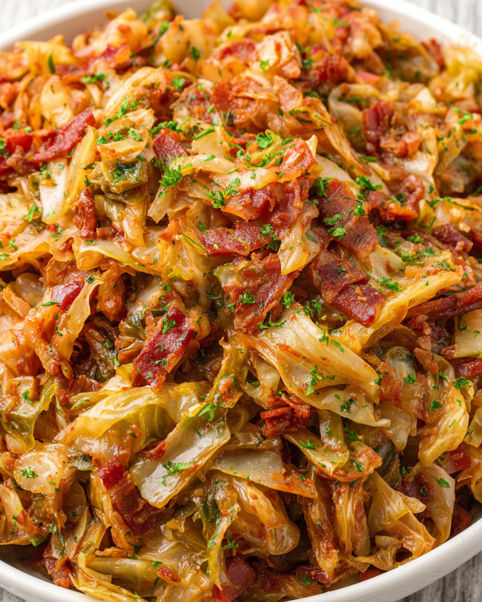 Cabbage is the star of this dish, providing both bulk and a sweet, earthy flavor when cooked. Its versatility allows it to absorb the flavors of the seasonings and meat added, making it a perfect base for this savory recipe. - 4 slices of bacon, diced