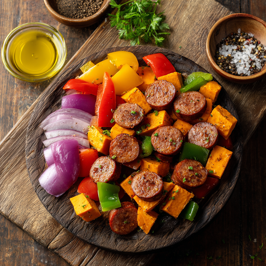- Cut everything uniformly: Aim for 1-inch cubes for sweet potatoes and evenly sized sausage slices to ensure even cooking.